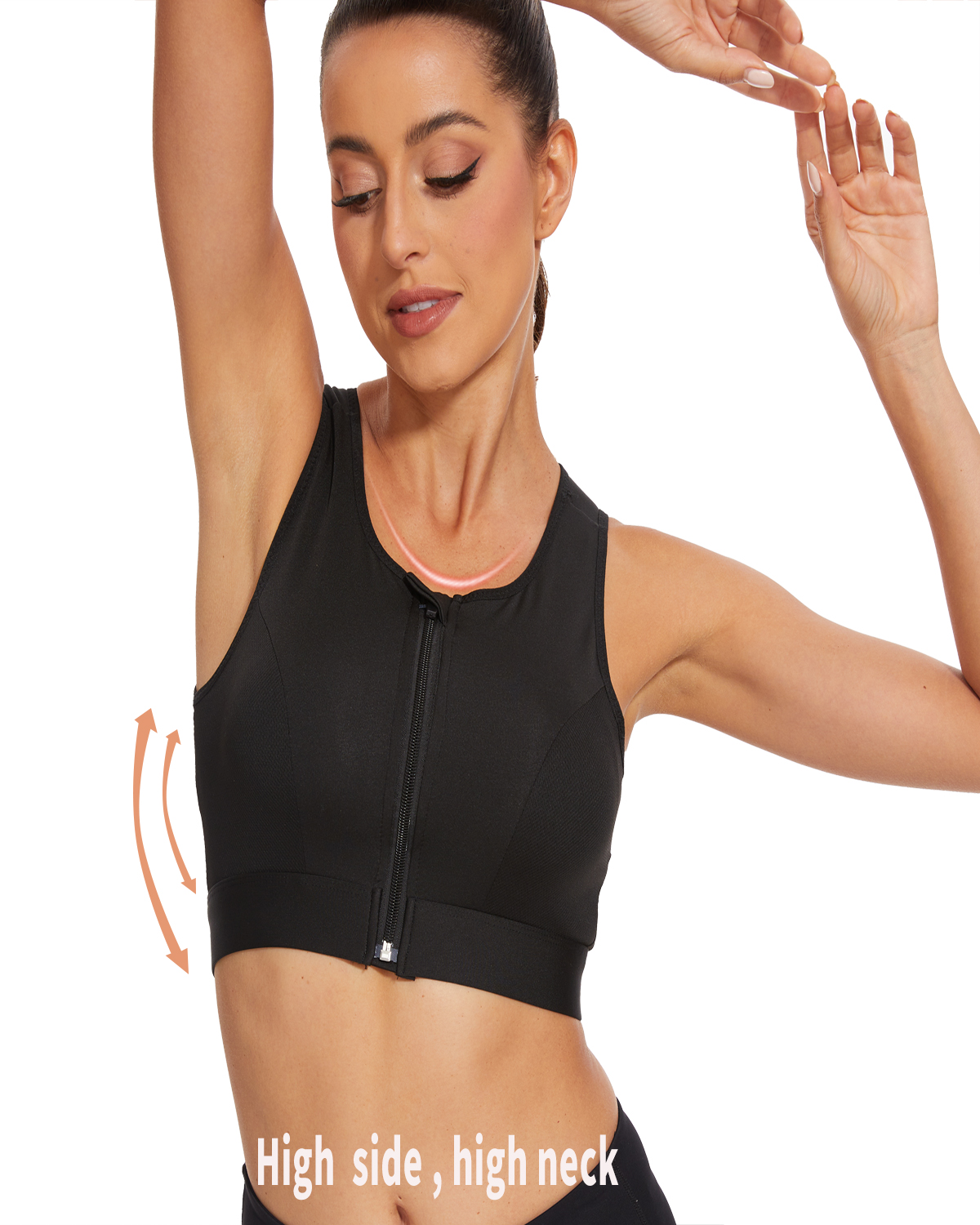Women's High Impact Sports Bra Compression Zip Front Closure Back Support Workout Tank Top Bra